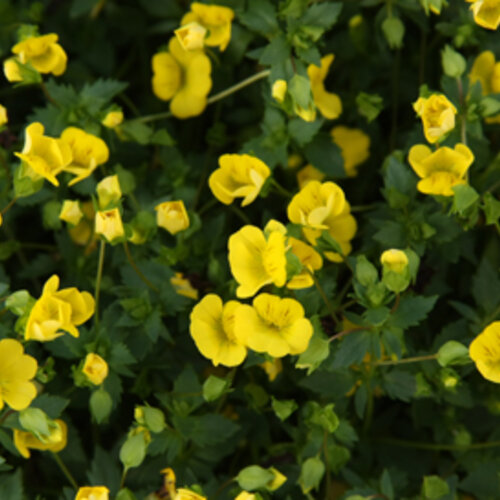 Small green leaves are covered with yellow nemesia-like flowers from May through October, excellent heat tolerance